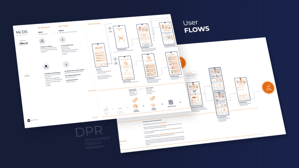 To determine the optimal solution for pharmaceutical logistics requirements, we initiated a comprehensive Digital Product Research (DPR) process. Recognizing the challenges of addressing complex issues and unknown factors, we began by collecting all relevant assumptions related to the product or service. Through this reflection exercise, we developed a methodology based on design thinking and technical research. Digital Product Research is a highly structured methodology consisting of fourteen different phases. In a co-creation process, we work with our clients to identify all relevant information about their existing product and their future goals.